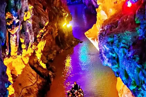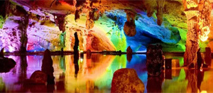 上层有高达30多米的顶天柱、可容万人的仙人田广场等。最下层是蜿蜒曲折的地下河,河水静静地流向洞的深处。