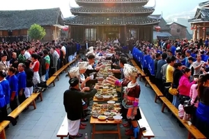 独家定制环节:【少数民族特色长桌宴】,侗族最高招待礼仪高山流水敬酒仪式,篝火晚会嗨翻全场!(激情洋溢)
