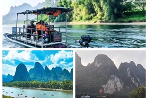 乘车前往草坪码头,乘坐电动排筏游览【漓江】,漓江两岸群峰连绵,相映成趣,感受“分明看见青山顶,船在青山顶上行”的绝妙景致,让您在这如梦如幻的人间仙境中,体验到“桂林山水甲天下”诗句的由来。与漓江水0距离接触,是真正的游山玩水,漓江上的竹筏分普通燃油版和豪华电动版,我们乘坐全新升级后的静音电动豪华漓江竹筏被称之为”水中法拉利“。乘竹筏游览,是体验漓江美景最好玩的游览方式。(轻松惬意)