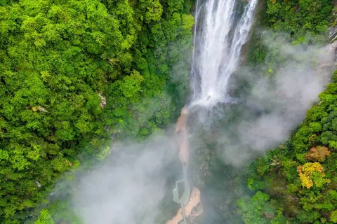 09:00 到达【通灵大峡谷】,峡谷内通天彻地,灵气飘逸,石井之下豁然开朗,别有洞天:【藏金洞】、【古石垒营盘】等宋代遗址,绝壁之上的【古崖洞葬】令人仰观奇叹。充满绿色生态的峡谷中,生长着各种名贵珍稀的奇异植物,如侏罗纪时代植被——桫椤、莲子观音座蕨,神奇的咬人树、耳朵树等,整个峡谷河涧曲回,翠绿如茵。进入峡谷深处,仰望高达188米的单级落差大瀑布——【通灵大瀑布】,从断崖处倾泻而下坠落鸳鸯潭,场面极为壮观震撼!