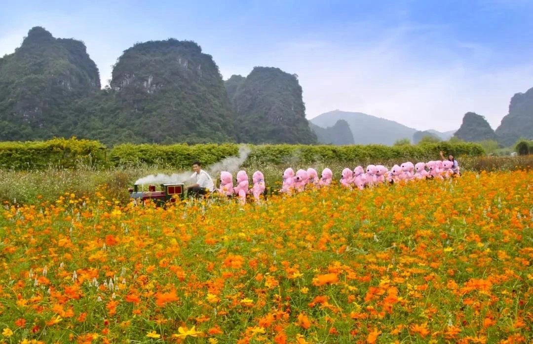 12: 30左右来到峰林小镇,开启狂拍模式,美丽的峰林倒影,浪漫的粉黛乱子草、狗尾巴草,热情的波斯菊....哎呀,各种pose摆起来,美照刷爆朋友圈、抖音时刻上头条...