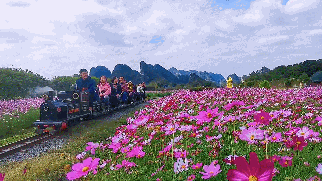 有兴趣的还可以坐上蒸汽小火车,叮当叮当跨过湖面,穿越花海...