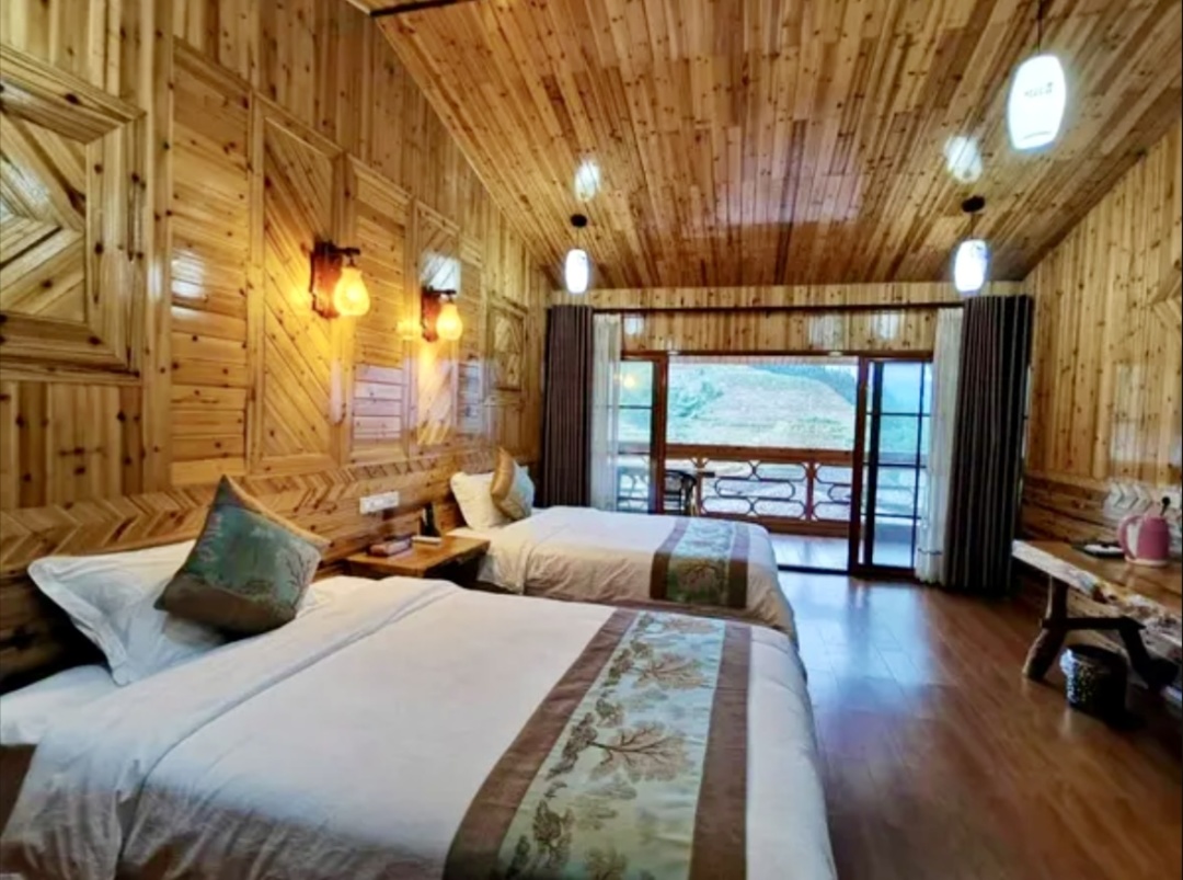 入住特色吊脚楼阳台观景房,走出去旁边就是梯田
