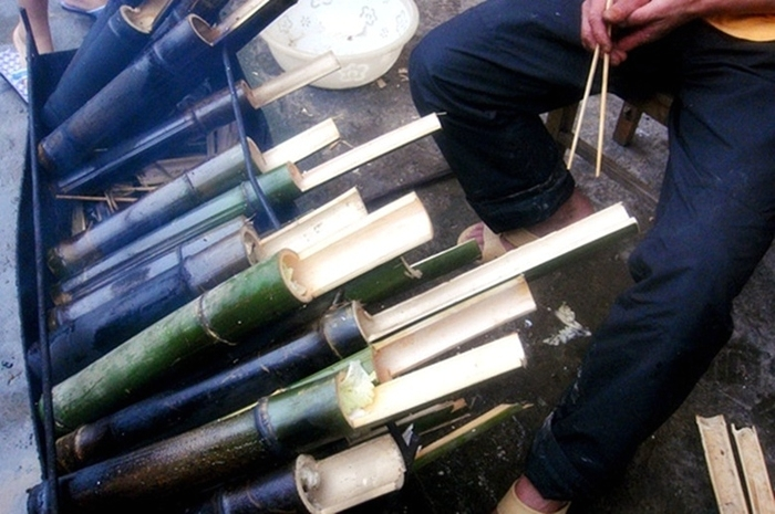竹筒鸡也是同样道理,将鸡肉用姜、糖、芝麻、胡椒粉、老姜、干香菇、葱等腌制后,塞进竹筒烤成的,清香滑嫩。清蒸竹筒鸡汤也不错,鸡汤带着竹子的清香还有柴火的味道。