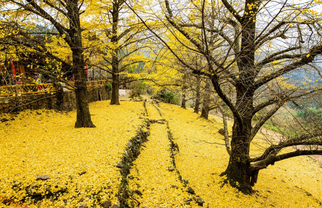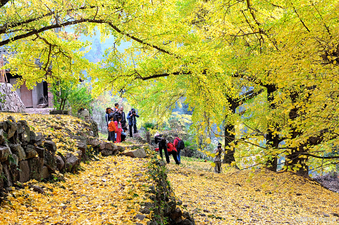 大桐木湾村是观赏银杏的最佳地点,在这里你可以看一簇又一簇的金色的银杏穿插于灰墙黛瓦间,散养的鸡鸭群从满地落叶的泥路上跑过。