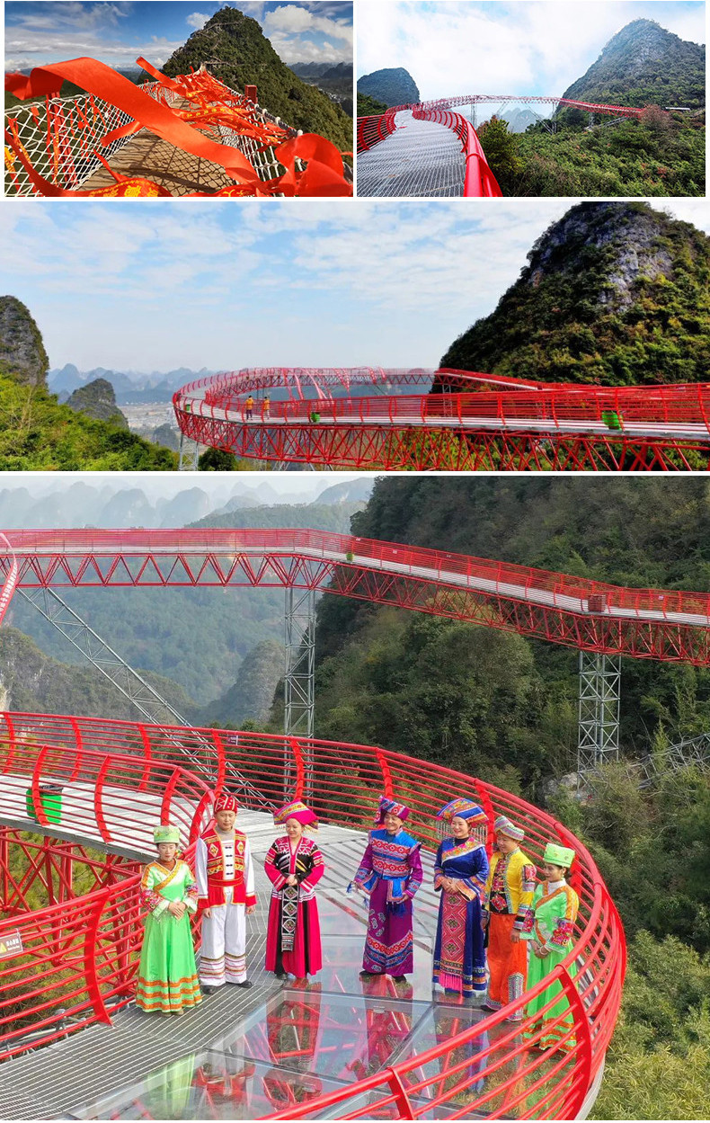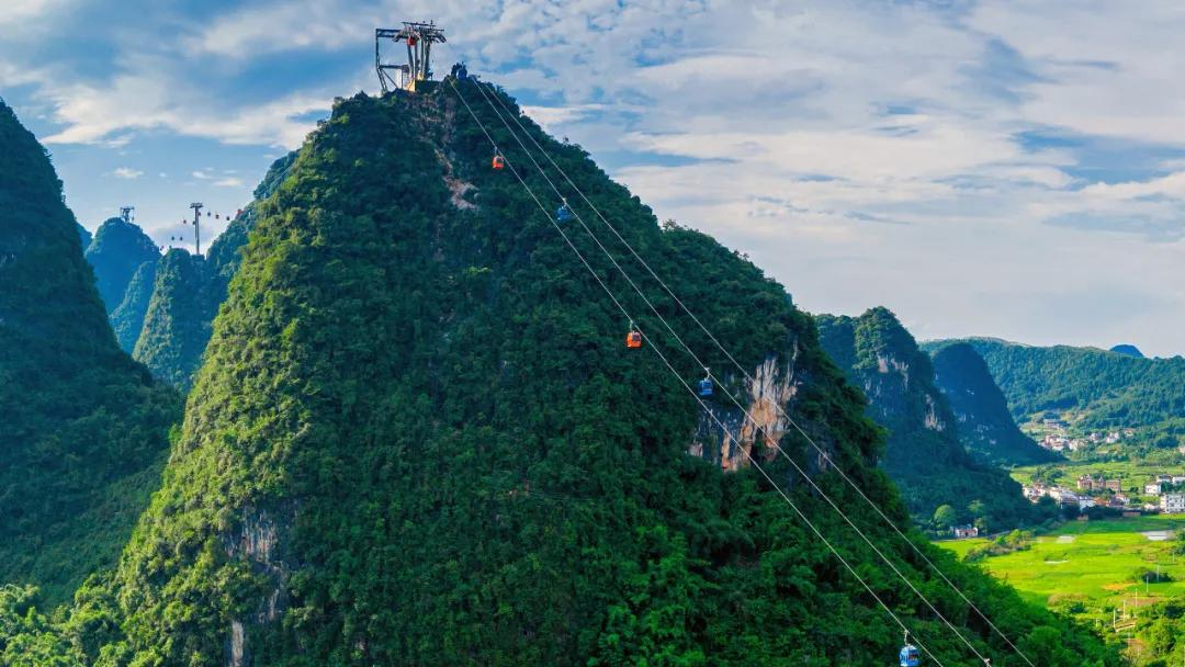 游览【网红空中花园-如意峰】(上下索道自理,往返160元每人,上山必选,无法徒步上山,不去如意峰的队友自由活动,和领队约好时间集合),坐在缆车里,看着连绵不绝的山峰从眼前略过,在这一片喀斯特峰林中穿梭,又可以挑战刺激悬索桥,惊险玻璃栈道。恍惚间,自己宛如“世外高手”一般,略使轻功便可直上云霄了