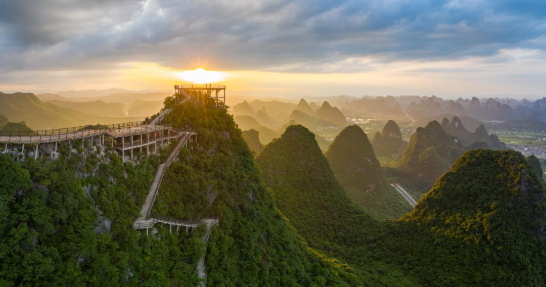 艳阳高照,晴空万里时,如意峰方圆几里的美景便一览无遗。如意云顶是如意峰最高点,玻璃观景平台,不仅是人们祈福如愿的吉祥圣地;也是远眺熔岩峰林奇观和清秀田园景致的最佳地。