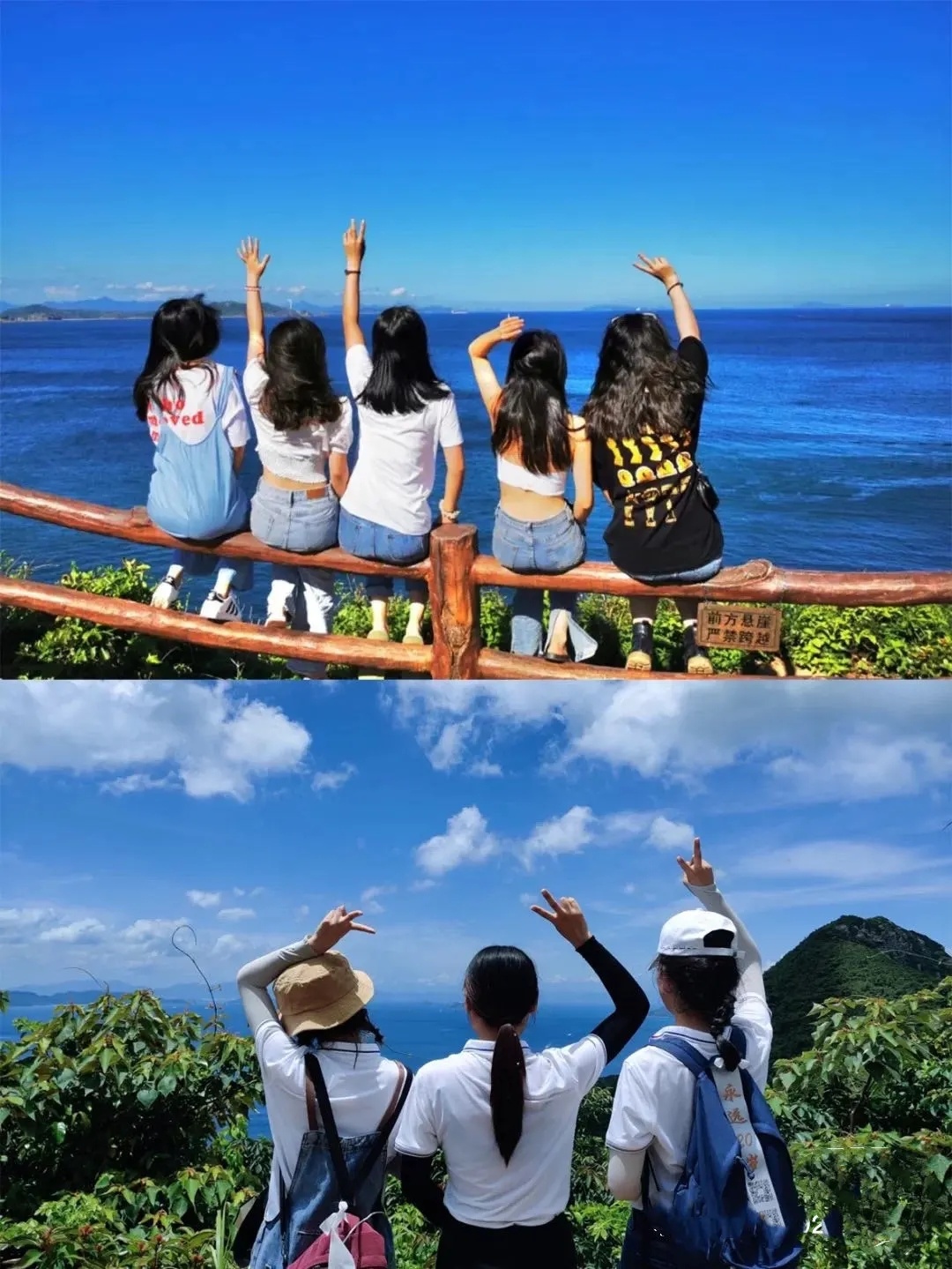 一边是山色旖旎,一边是海上烟波,听惊涛拍岸海啸风吟,回头再看看海天一色的绝美景色,眼界开阔心境澄明。