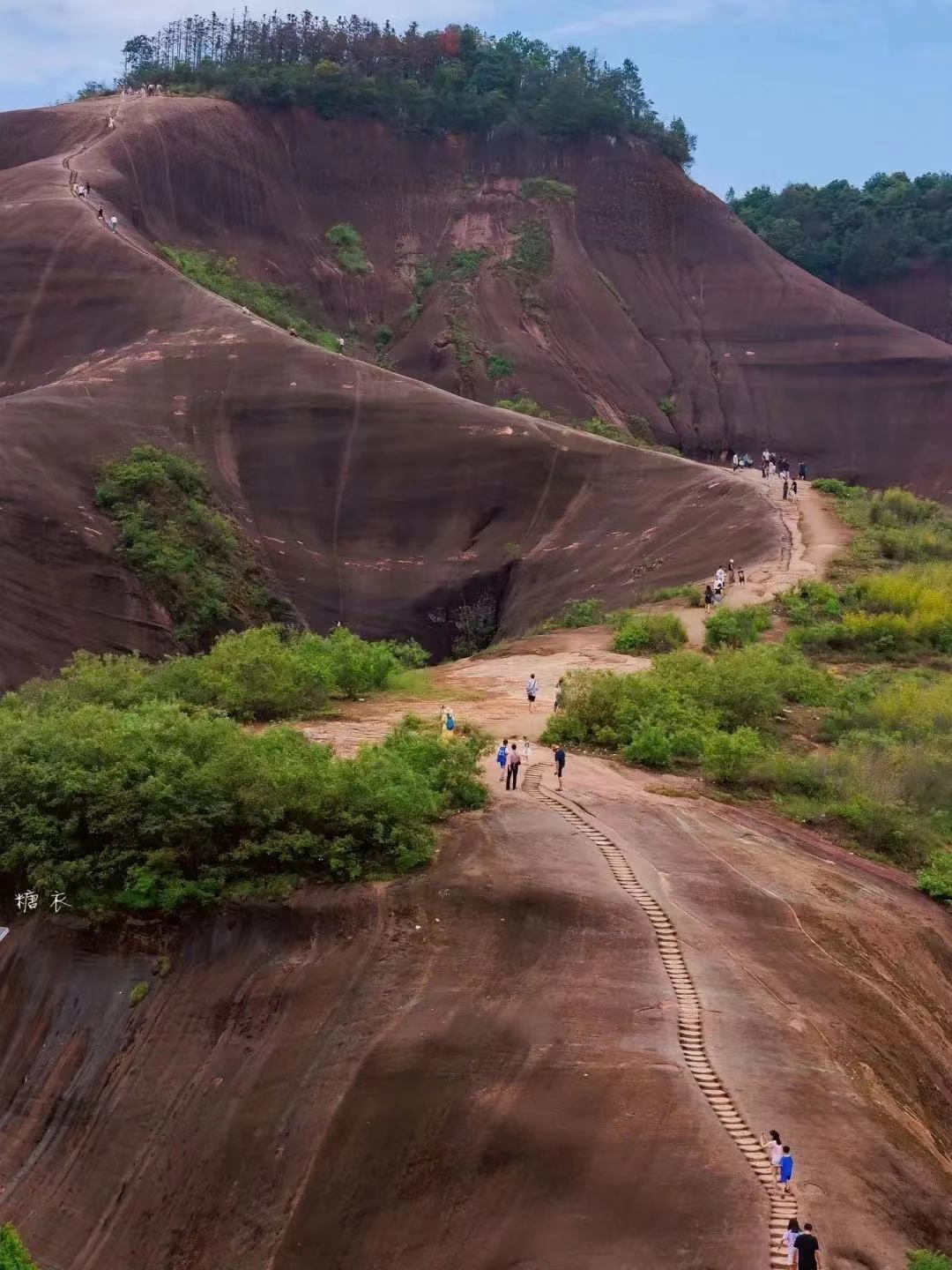 13.00到达开始徒步,一个绝对值得一去再去的好地方,经典的丹霞地貌,山水犬牙交错,奇形怪状,不是鬼斧神工,而是上天的刻意而为之!惊而不险的悬崖陡壁,绝对惊险刺激!山很青,水很秀!很原始,很安逸!整个风景区集山、水、林、洞、佛为一体,聚雄、奇、险、巧为一身。明代大旅行家徐霞客曾赞叹“江口诸峰,俱石崖盘立,无一山不奇,无寸土不丽”,并雕刻“寸土佳丽”留存至今。