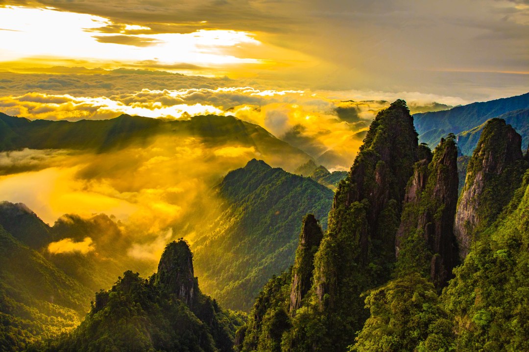 10:30 深度游览五指峰景区,漫步悬空栈道,南中国最长的悬空栈道;总长约8公里,海拔1400米至1600米,两层栈道,全程无障碍观光环线,登高山、临绝壁如履平地,尽享“非人”奇遇。