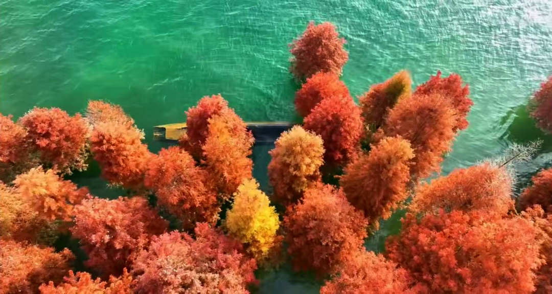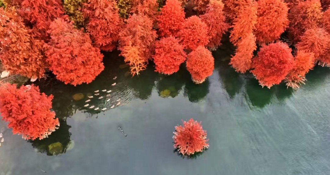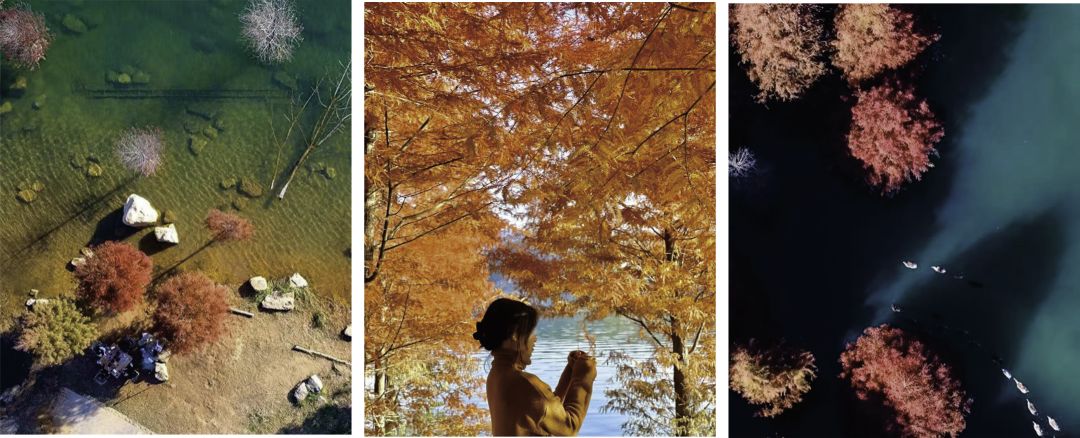 深秋的白廊水杉倒影如梦如幻。