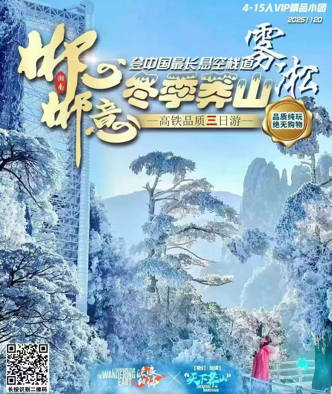 10:30 深度游览五指峰景区,漫步悬空栈道,南中国最长的悬空栈道;总长约8公里,海拔1400米至1600米,两层栈道,全程无障碍观光环线,登高山、临绝壁如履平地,尽享“非人”奇遇。