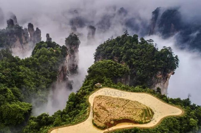 1992年12月,以张家界国家森林公园为核心的武陵源地区因奇特的石英砂岩大峰林被联合国列入《世界自然遗产名录》。