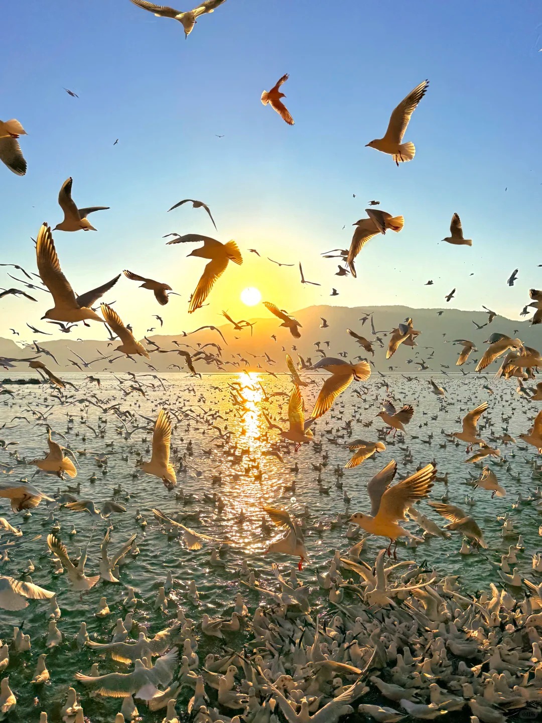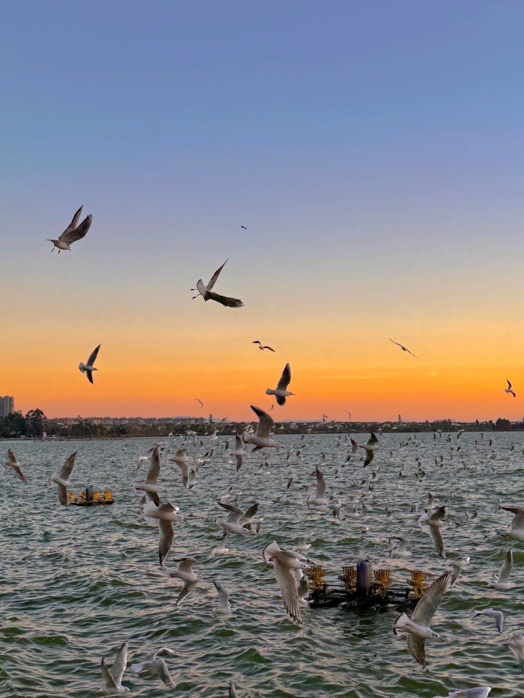 冬天红嘴鸥的天堂,昆明的母亲湖,一起与海鸥共舞;