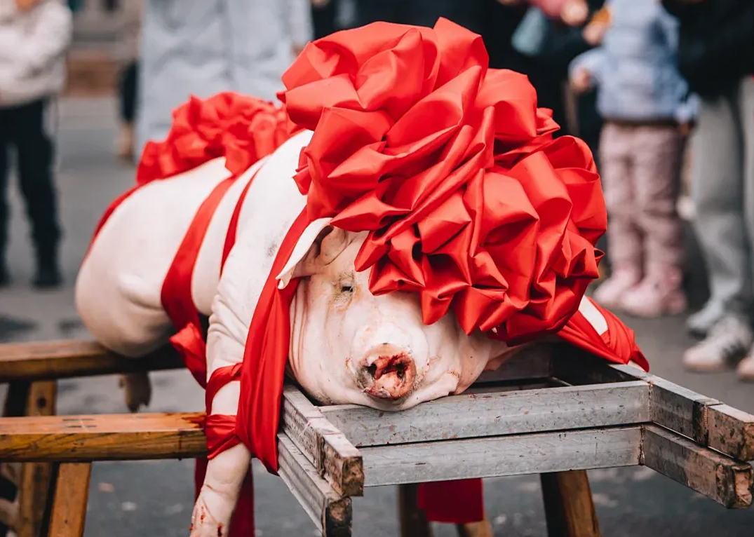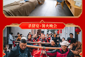 - 15:00-17:00 办理入住,休息放松,拍山景,参与杀猪,一起按猪,分猪肉,起火做大餐。