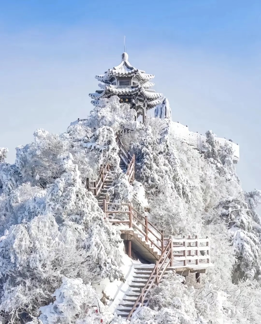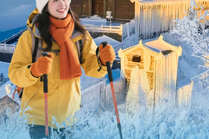 南岳衡山历来就有“中国南方最美赏雪胜地”的美誉,雾凇景观千姿百态,丝丝状似银针,颗颗状似玉珠,朵朵状若琼花,美轮美奂让人心旷神。