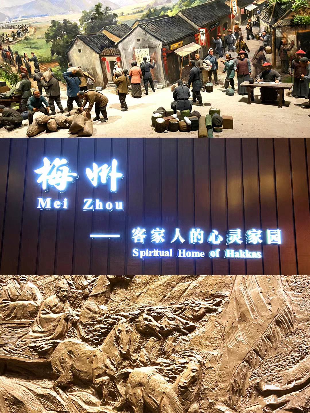 13:30左右参观中国客家博物馆,是中国首家全面展示客家民系文化渊源与发展,系统收藏、整理、研究、展示客家历史文物与客家民俗文物的国家二级综合性博物馆。博物馆馆区占地170.3亩,建筑面积3.7万平方米,由主馆客家博物馆、分馆黄遵宪纪念馆、梅州市非物质文化遗产展示馆、梅州华侨馆、梅州大学校长馆、梅州将军馆、梅州名人廉吏馆、客家匾额馆以及《客家文博》杂志社组成