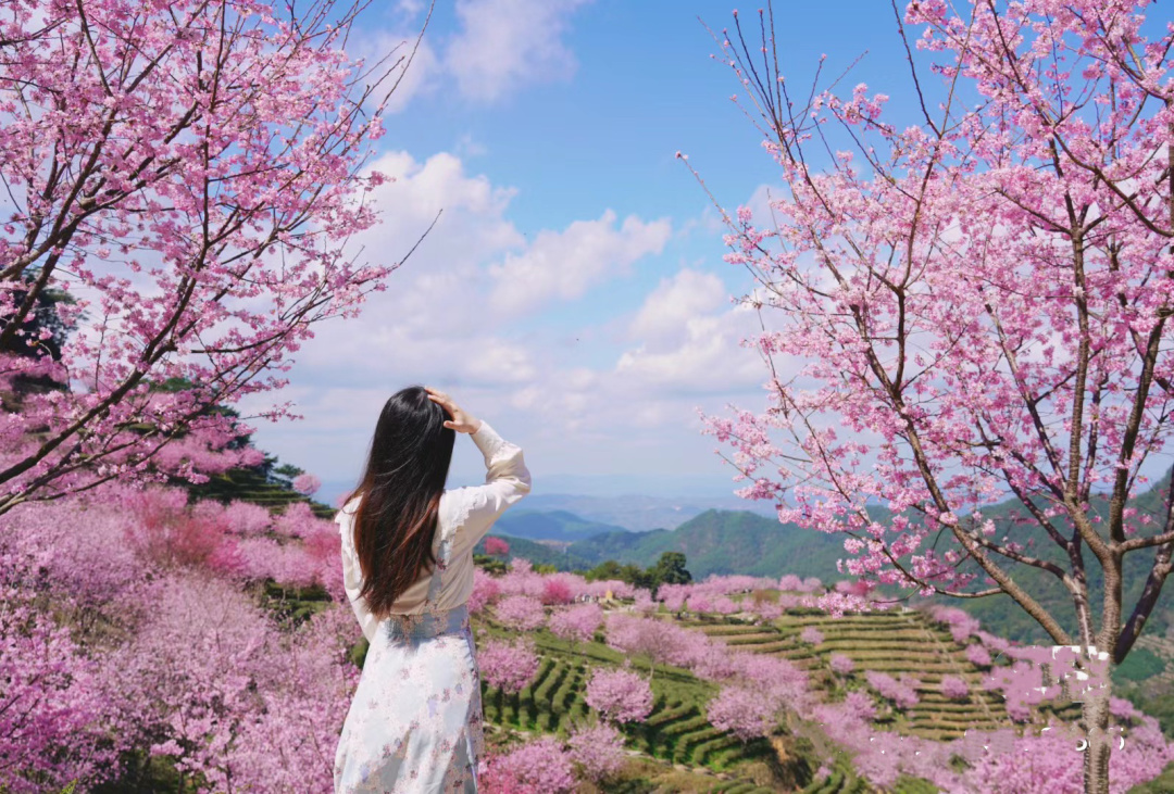 梅州阴那山樱花---广东最美的茶园樱花,千亩茶园,万株樱花,层层叠叠,山野间的绿色茶丛之间,玫红与浅粉的樱花交相辉映,美不胜收!