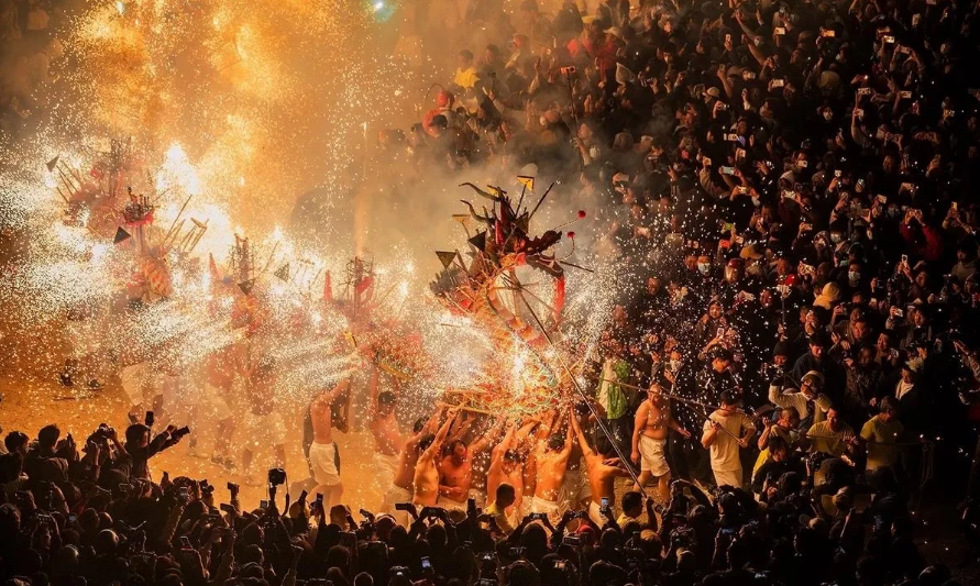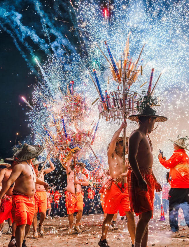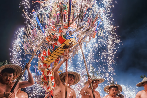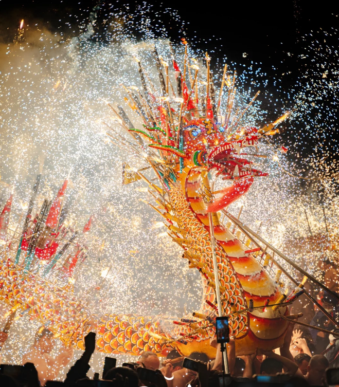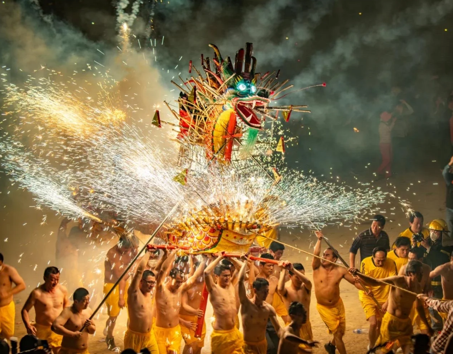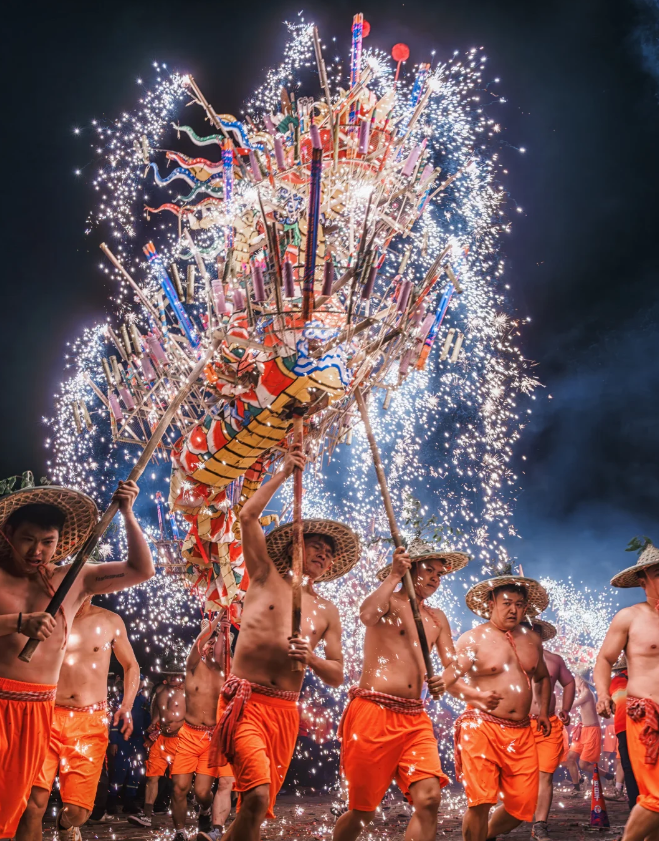 最初是当地客家人为祈求风调雨顺、五谷丰登而举行的元宵庆典。烧火龙以长达40多米的龙身装满烟花、火箭,舞动时火花四射,场面震撼。
