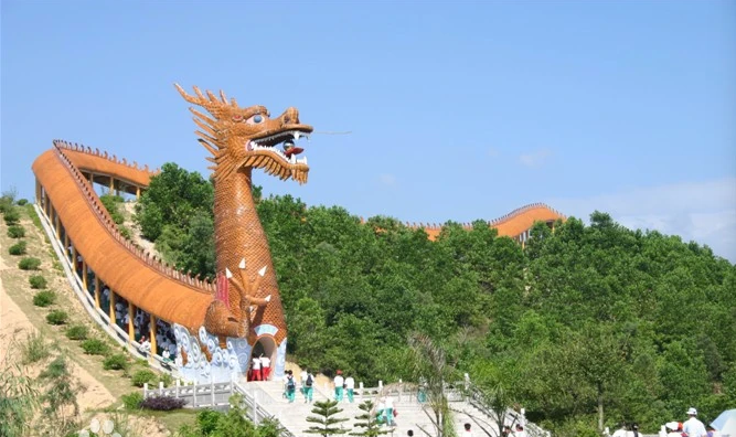 万佛园--以佛教文化为核心的城市公园,核心景观为虎头山上的“中华龙”建筑群