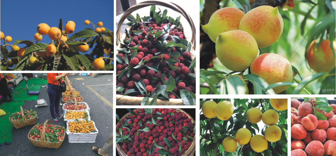 枇杷、杨梅、水蜜桃、香瓜、黄桃,鹰嘴桃、李子、西瓜、葡萄、梨子、清江蜜桔、柑子、冰糖橙、柚子等等