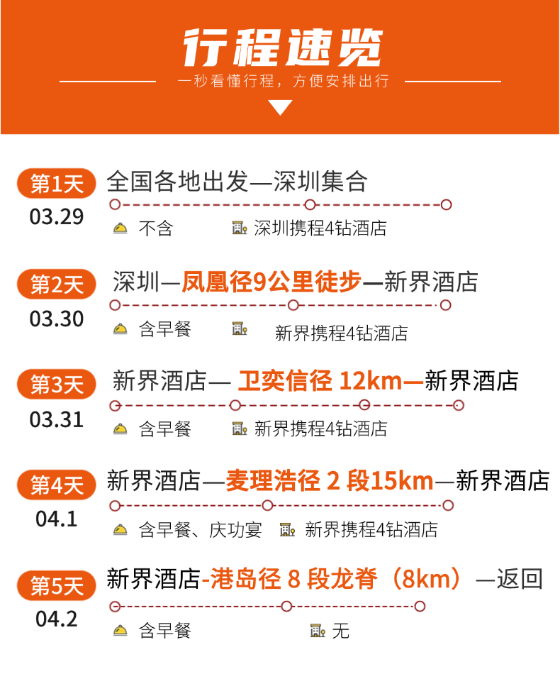 2、住宿:全程 5 天 4 晚,默认两人一间,含 1 晚深圳携程四钻酒店、3 晚香港新界携程四钻酒店连住;