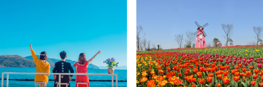 ▶大理古城—大理花海吉普车旅拍—洱海生态廊道(网红S弯)—洱海自由骑行—昆明酒店