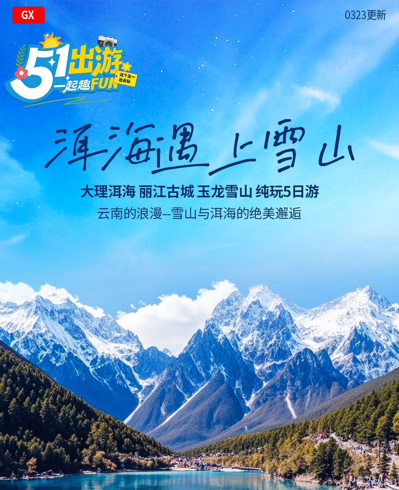 5.门票:行程所列景点门票(南诏风情岛摆渡船、玉龙雪山门票,冰川公园大索道,印象丽江,花海,吉普车旅拍,丽江古城维护费)