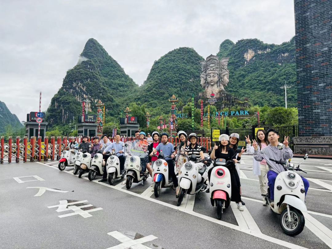 挑选自行车,骑行十里画廊,从阳朔县城出发,经过蝴蝶泉景区,到达遇龙河工农桥码头,往月亮山方向骑,约15分钟车程,即可到达月亮山,打卡月亮山(不爬山),后返回工农桥码头往遇龙河方向骑行,经过大片农田,到达遇龙河著名打卡点--大水车,停好自行车,拍照、闲逛等