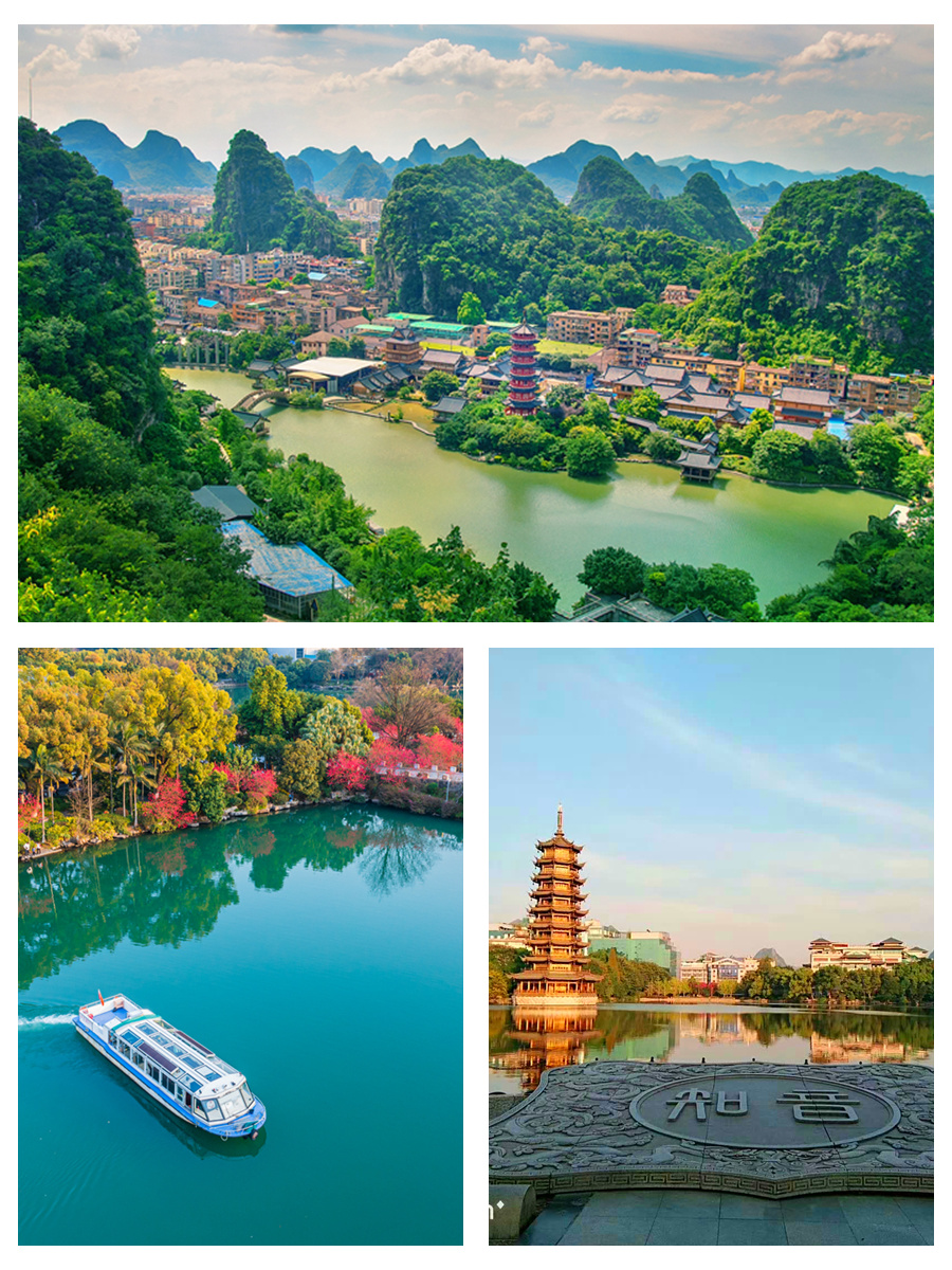 穿过中心步行街,到达两江四湖,看日月双塔,漫步两江四湖,感受桂林山水......