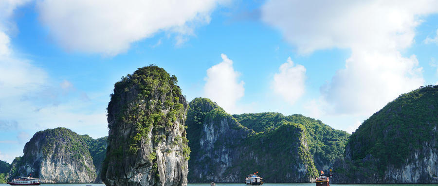 从斗鸡石出发游览下龙湾的精华线路【欧美迷宫仙境】,随着游船观赏一座座的独立仙岩(大拇指山、青蛙山、天鹅山)等千姿百态的景色。下龙湾亦有小渔船如影相随,把酒临风,去国怀乡之忧荡然无存,在天海一色中的游船上大快朵颐的美妙感觉在您的全身悄悄蔓延。