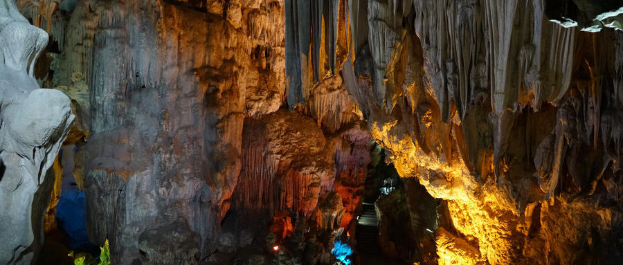 后参观位于下龙湾游区中心的无串子(BOHON)群岛上,特大喀斯特地貌天然溶洞【惊讶洞】惊讶洞是下龙湾上最宏大,美丽的溶洞之一。