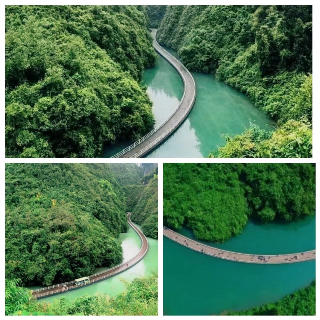 网红水上栈道,廊桥遗梦又称水上浮桥,从上方俯瞰,蜿蜒的浮桥横亘在水面上,让人惊叹不已;行走至浮桥上,两岸层峦叠翠,让人心旷神怡。