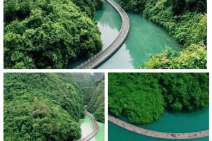 其中最美漂浮式“水上栈道”, 有一个山秀水碧的地方叫狮子关,这里有一条500米长的“水上栈道”蜿蜒穿梭在碧绿的水面上,它有一个诗意的名字叫“廊桥遗梦”,让人瞬间联想起美国那部著名的同名电影。