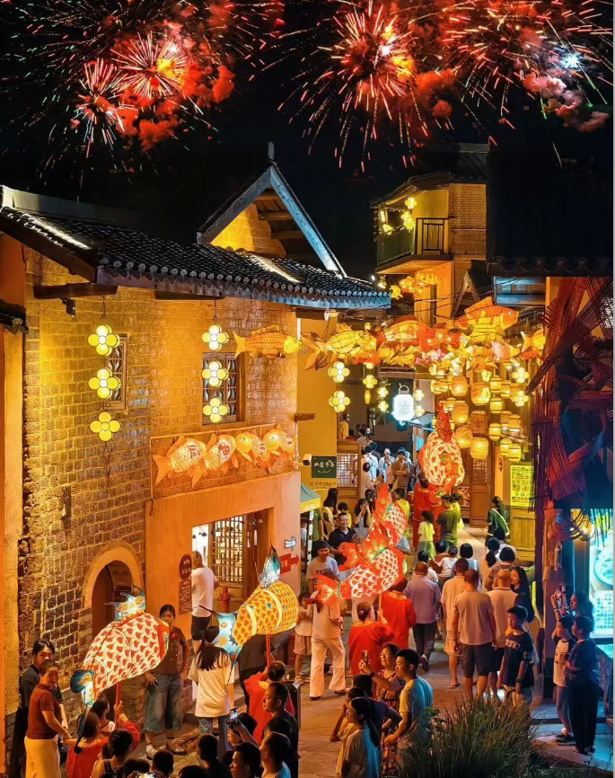 注意:目前鱼灯巡游只有每周六及节假期间有哦!一般巡游时间19:30-21:00