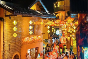 梦华录打卡点:这里宋城花灯节氛围浓厚,挂满灯笼,上面写着“梦华录”三个大字,非常适合古风拍照。