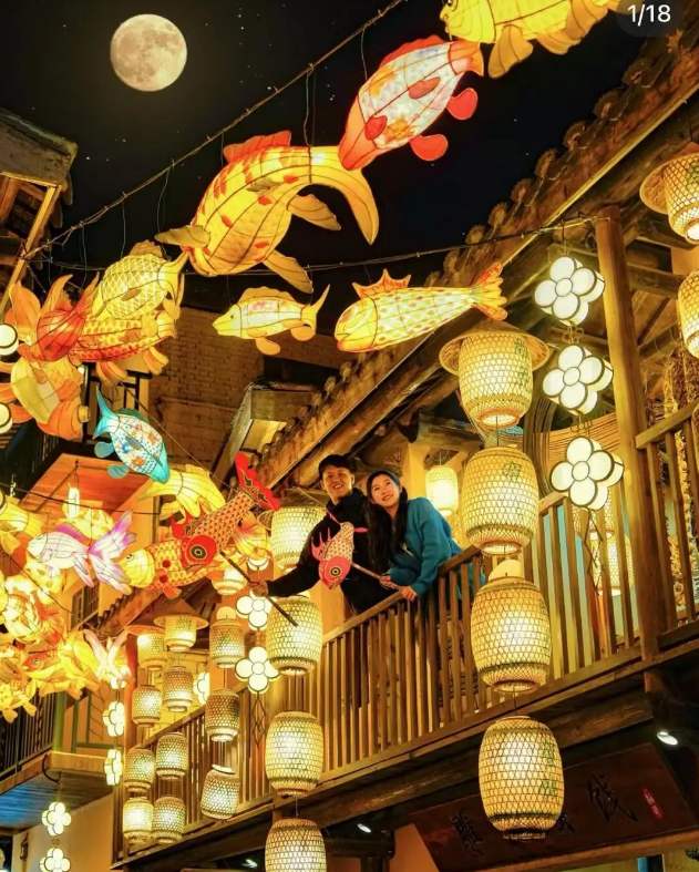 这里在鱼灯夜游堪称出片大地,游客可以自己DIY或者租借小鱼灯跟随巡游队伍一起游行。
