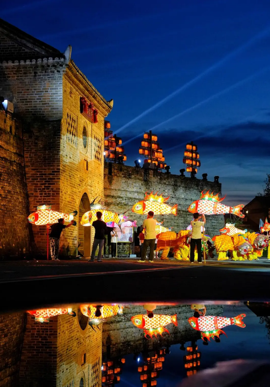 定南客家古城--大鱼海棠照进现实,必打卡活动百米鱼灯长龙 🐉 非遗匠人手工扎制的10盏大鱼灯,及游客朋友DIY的小鱼灯,夜幕下如星河游动!民俗快闪 💃 巡游途中随机触发!《鲤鱼灯舞》+《采茶戏》片段,演员会拉路人一起参与举灯表演,超有参与感~也是《开始推理吧3》的拍摄地哦