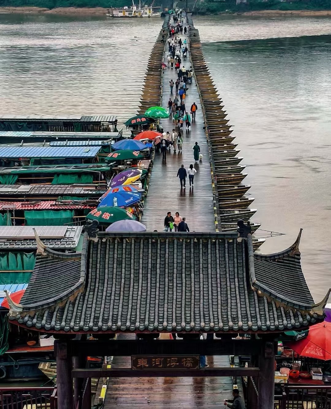 【古浮桥】这个有着80多年历史的古迹,这是一座由10多只小舟板并束之以练绳相连而成的桥,也是赣州古城的重要标志之一。站在古浮桥上,可以依动整个赣州城的美量,感受这座城市的路久历史和文化底蕴;