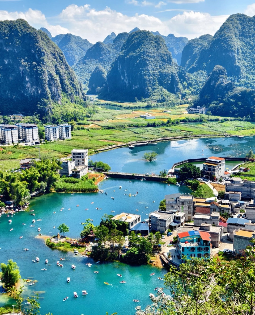 2022年,《航拍中国》第四季也来到了广西河池,对都安地下河国家地质公园进行了拍摄——“盛夏时节,看起来像海的颜色,很难不吸引人们飞身一跃”