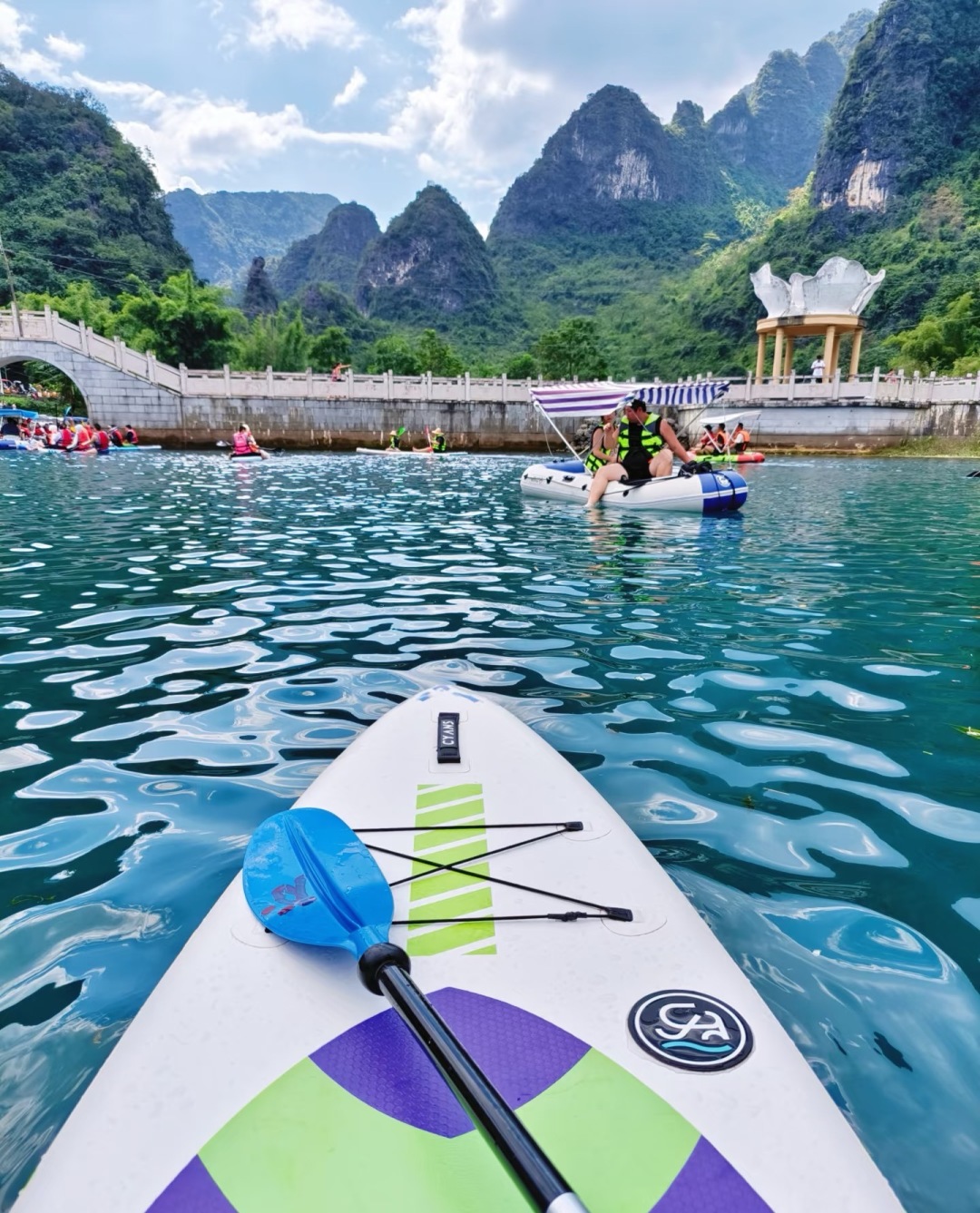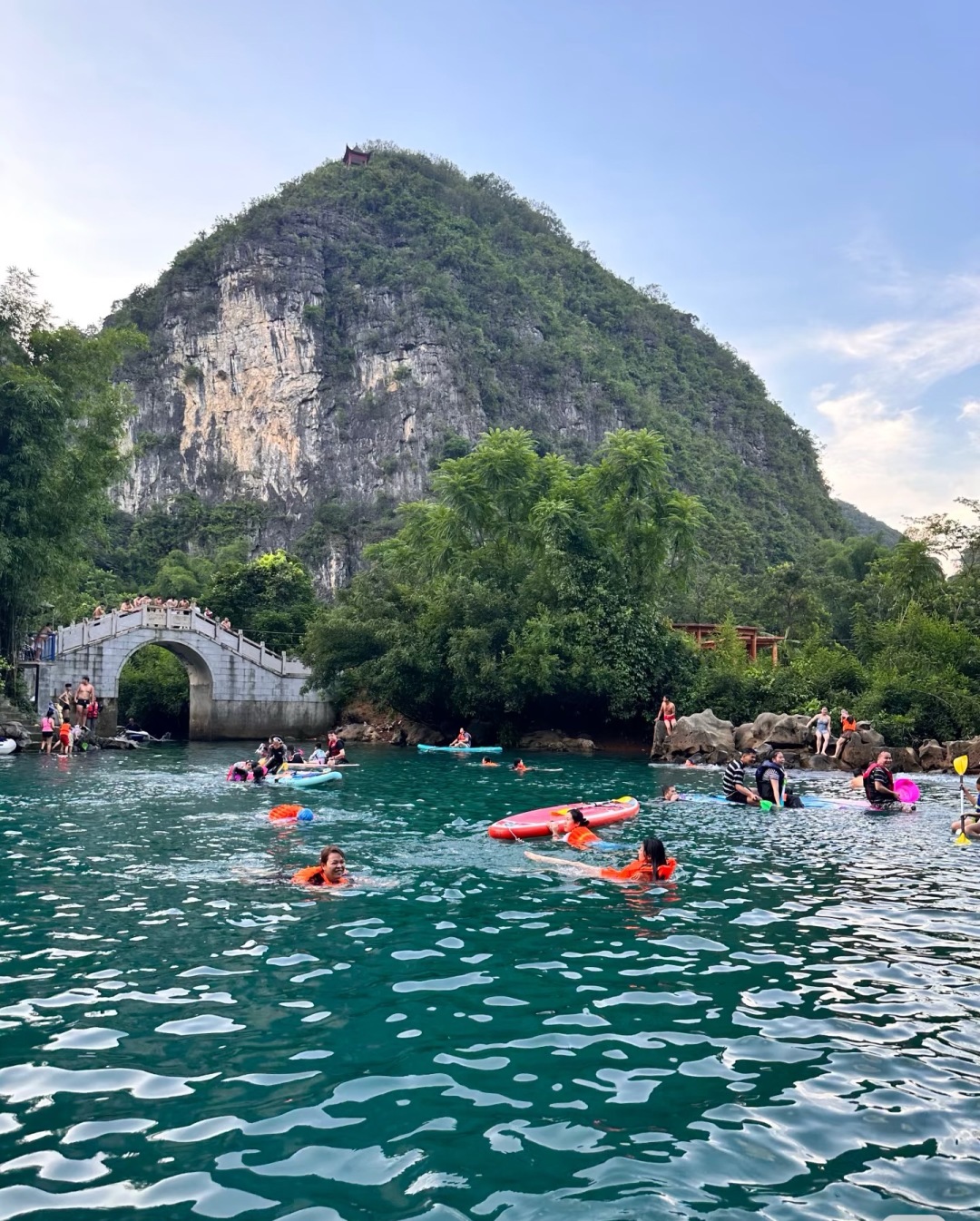 每到夏天就会有特别多的年轻人会来到这里玩浆板,清澈的水让浆板似漂浮在空中,特别神奇。