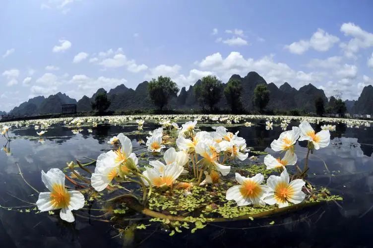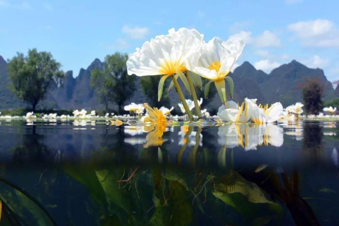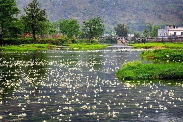 每年的4月末-11月就是海菜花最佳观赏时期,这段时间,无数花朵冒出河面,晶莹剔透,成片的海菜花漂浮在水面,形成一道独特而迷人的生态景观。