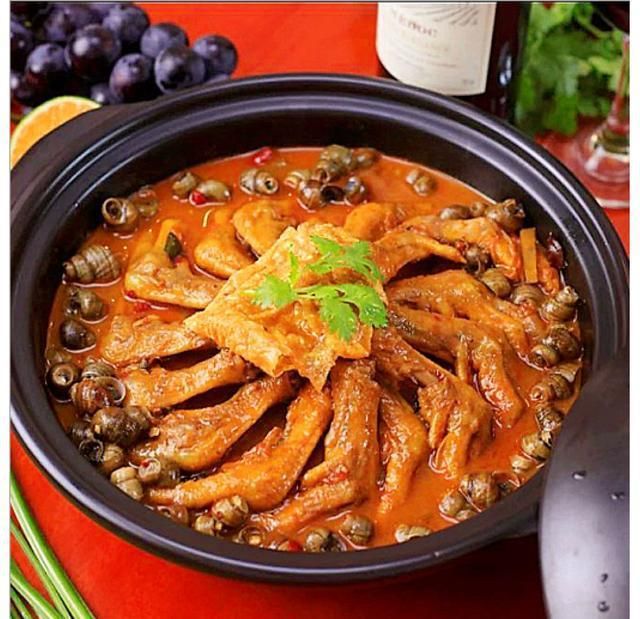 螺蛳鸭脚煲同样不容错过。炖得软糯的鸭脚,轻轻一嗦,骨肉分离。螺蛳的鲜美与各种香料的味道交织在一起,再加上芋头、豆腐泡等配菜,满满一锅,让人吃得满足过瘾。