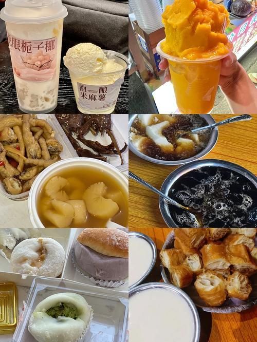 这里还有各类美食小吃,包括海鲜、水果以及各式各样的冷饮等。
