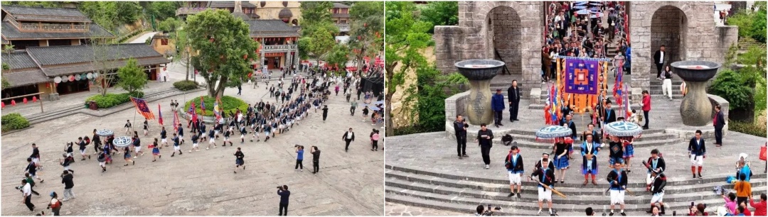 白裤瑶寨,整体呈现出既寨非寨、既城非城、既殿非殿、既宫非宫的建筑风格。将白裤瑶民居、非遗展示、白裤瑶民族风情融合一体,通过场景化打造、非遗展示、氛围演出全景化展现白裤瑶胞的生产生活以及生命状态。白裤瑶寨是一个没有围墙的活态实景博物馆,进入白裤瑶寨让您沉浸式体验白裤瑶原始、古朴、神秘的生产生活场景和浓郁的白裤瑶民族风
