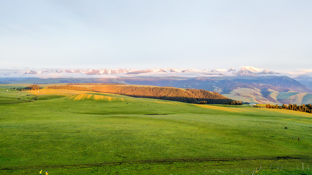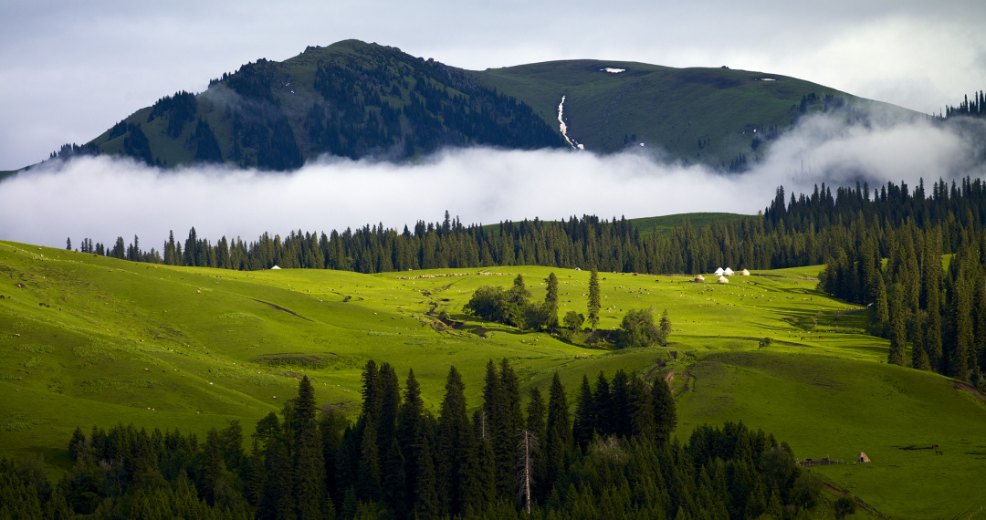 有天然雪岭云杉、草原、溪流、山泉,苍茫辽阔的琼库台大草原,岁月静止在这里。