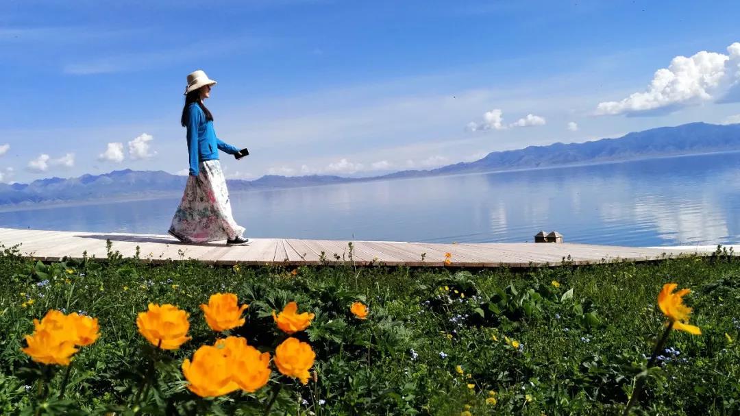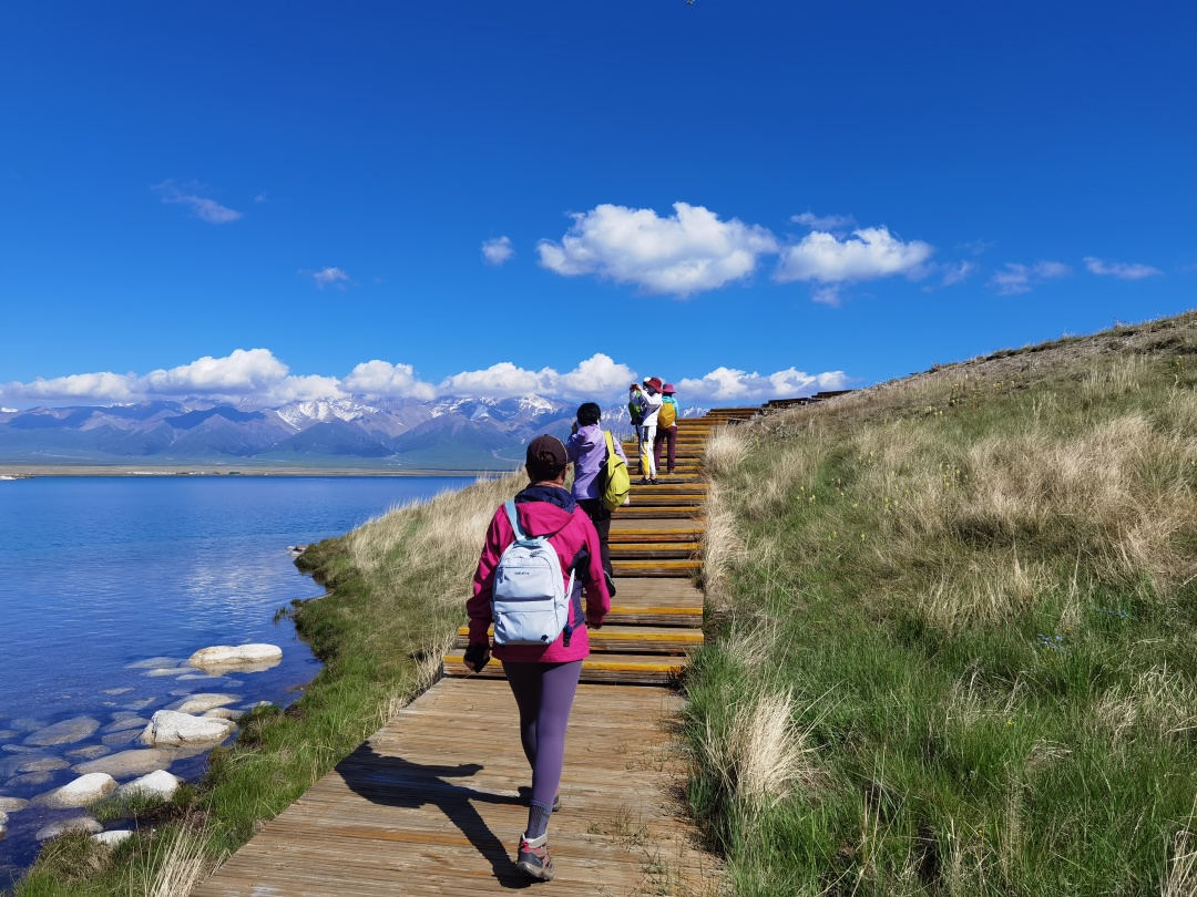 早餐后前往“神秘美丽的湖泊”赛里木湖徒步6公里深度体验赛里木湖。这个季节的赛里木湖恍若上帝的调色盘,天空是通透的蓝与湖水相映成趣,岸边五颜六色的野花铺满草甸,远处天山山脉连绵起伏,牛羊悠闲漫步,令人如痴如醉。徒步路上偶遇赛里木湖的天鹅