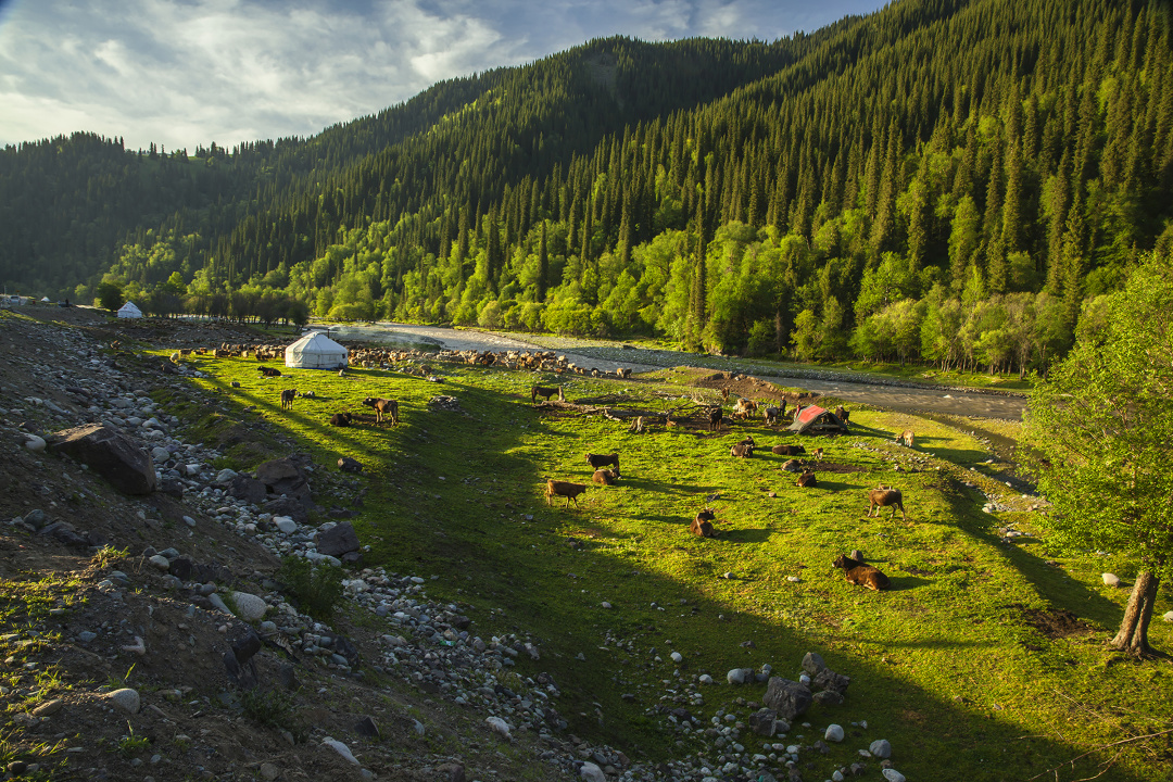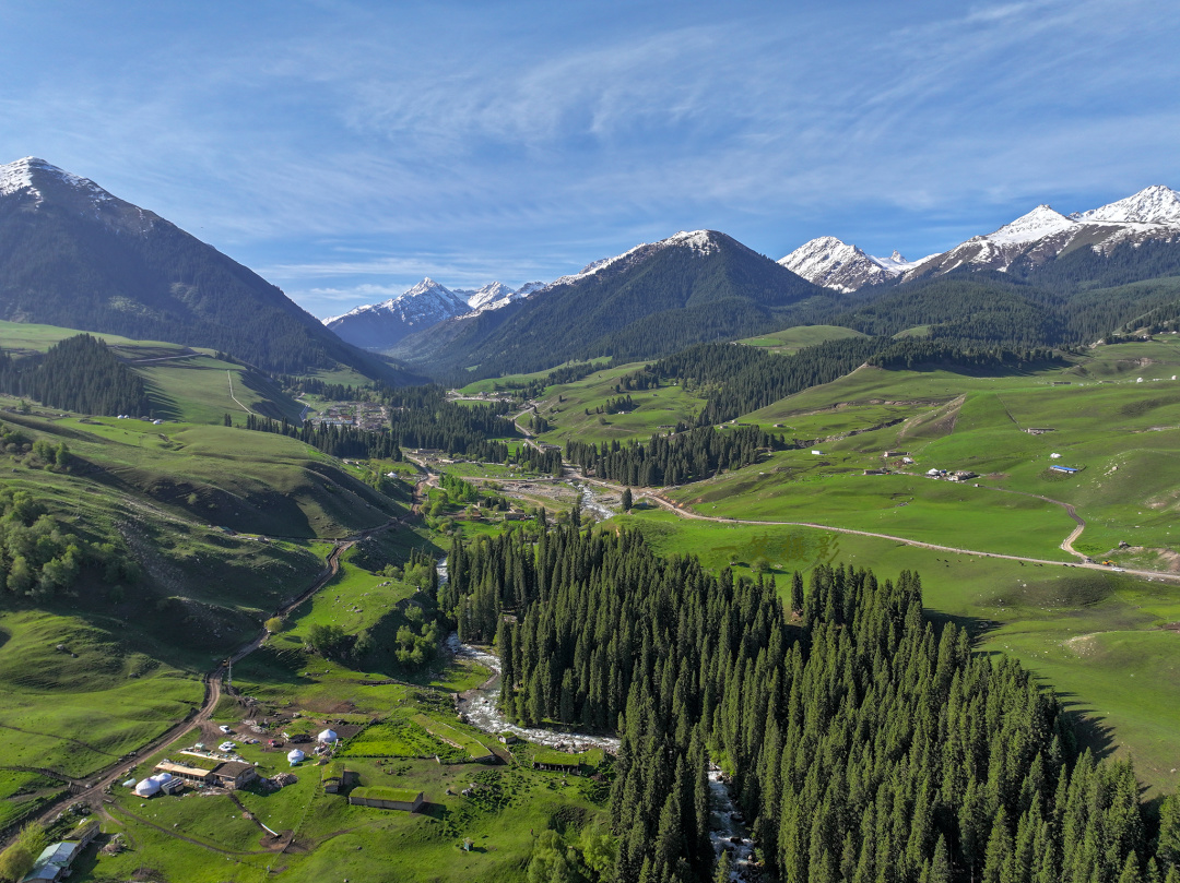 在前往伊犁河谷的路上,总也离不开天山这个巨人的目光,琼库什台村,是天山脚下一座桃花源式的童话村庄,西天山风景中的远古传唱。