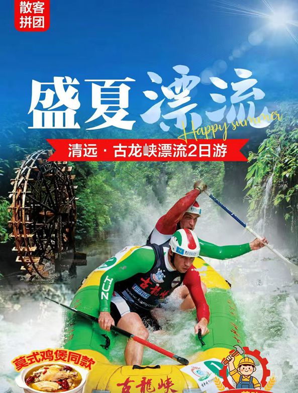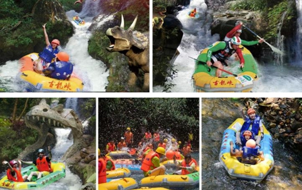 13:00-16:00【2 选 1】参加 2007 年国际漂流决赛赛场【古龙峡全程漂流】 (全程约 1.5 小时) 全长 6.1 公里, 落差达 236 米, 共 137 处, 创下了广东单项漂流长度最长、 回旋最多、落差最大三项纪录, 被誉为中国漂流的巅峰之作。