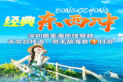 行程亮点1、被《国家地理杂志》评为中国最美的十大徒步路线之一。2、深圳最美丽、最经典的海岸线徒步线路,屏山傍海,山岳纵横,沿着蜿蜒的天文台栈道一路向上,赏无敌醉美海景...3、距离近,价格超实惠,让你想走就走的旅行,随时可实现4、来这里随手一拍,即是大片;来这里随手一抖,就是热门.....东西冲是中国最美丽的八大海岸之一,同时也是中国最经典的八大徒步旅游线路.东西冲海岸线位于深圳南澳半岛,为花岗岩山地...